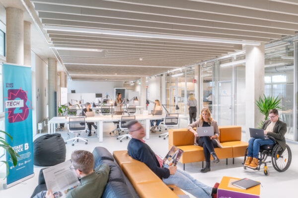 Mitten im Gründungszentrum STARTBLOCK B2 findest du einen Coworking Space, der dir den Rücken freihält. Unsere modernen, offenen Arbeitsbereiche bieten dir die richtige Mischung aus Fokus und Austausch – für konzentriertes Arbeiten genauso wie für spontane Gespräche zwischendurch.